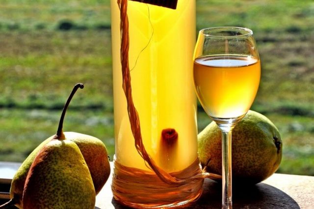 Infundir un producto alcohólico durante 2 meses en una habitación, en una habitación oscura. Cuela el licor de pera en casa antes de usarlo.