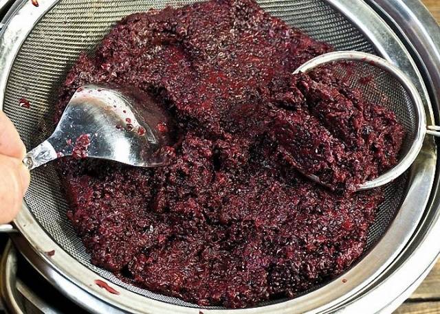 En este caso, el jugo se usa para hacer vino y la pulpa restante se reserva para chacha. No es necesario exprimir el jugo de las pieles con mucho cuidado. La determinación de la consistencia deseada se puede hacer de una manera bastante sencilla. Toman una cierta cantidad de pulpa en la mano y aprietan bien el puño. Si el jugo se ha filtrado a través de sus dedos, entonces la consistencia es normal.