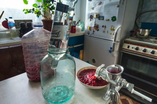 No se requieren habilidades especiales para su preparación. Vale la pena tomar un frasco de 3 litros y verter 4 cucharadas en él. bayas y azúcar. Vierta todos los ingredientes con licor de luna por encima. Enrolla el frasco con una tapa de metal. Agite el recipiente periódicamente para que el azúcar se disuelva mejor.