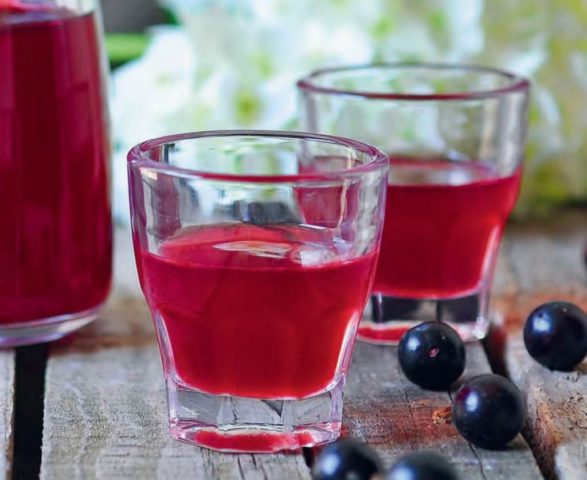 Un licor de grosella negra casero dulce rápido con vodka se prepara en un día.