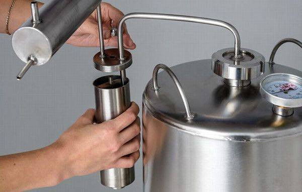 Para la destilación, puede utilizar un aparato de cualquier diseño, tanto confeccionado como casero. Lo principal de esta receta es el hecho de que el alcohol ilegal se destila muy lentamente. Por lo tanto, el fuego se minimiza, el líquido debe gotear lentamente.