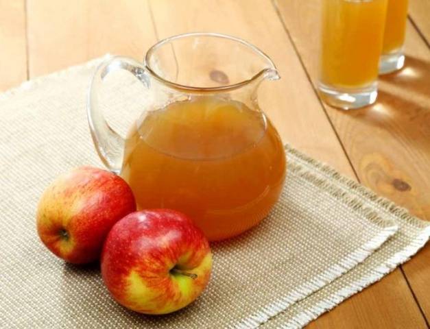 - Coloca el jugo de manzana en una cacerola. Cubra el recipiente con una gasa. Durante 2-3 días, el jugo debe mantenerse a temperatura ambiente. Durante este tiempo, es necesario mezclar bien el producto varias veces, por lo que debe dividirse en 2 componentes: pulpa y jugo puro.
