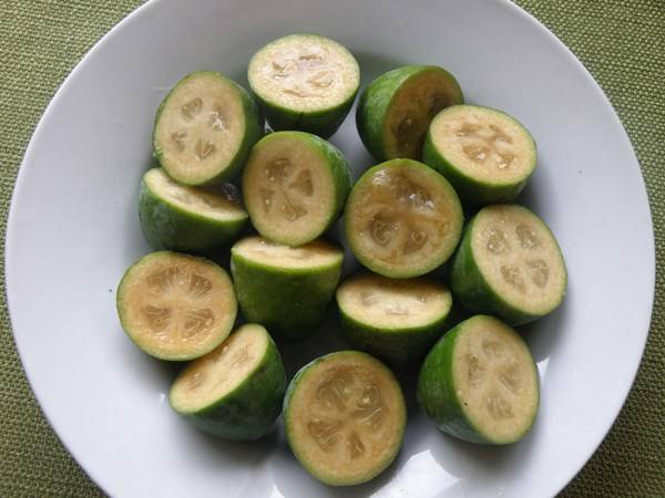 Se recomienda elegir frutos más grandes de un color verde intenso. Si la pulpa feijoa blanco, la fruta aún no está madura. Por tanto, se dejan un par de días antes de la maduración final.