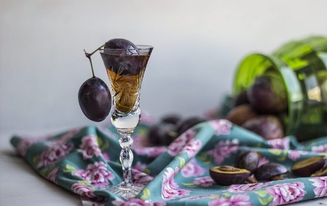 El uso de alcohol para infusión endurece la ciruela. Para relajarse, esta receta generalmente incluye ramitas de menta fresca.