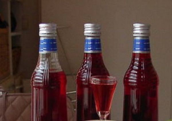 - La tintura se embotella y se deja reposar un mes más. La bebida se considera lista cuando es de color burdeos transparente a la luz. Quedará una capa de sedimento en el fondo de las botellas. El líquido debe drenarse con cuidado. Se puede filtrar a través de algodón y gasa.