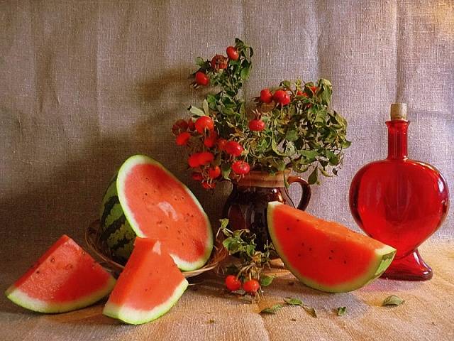 No a todo el mundo le gusta el vino de sandía en casa. Pero los amantes de la bebida de sandía la prefieren incluso a los exquisitos vinos de uva. Al comienzo de la preparación, el vino es rosado, pero en el proceso de infusión se vuelve naranja o incluso pardusco rojizo.