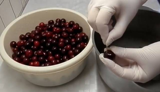 - Para esta receta de vino casera, se deshuesan las cerezas.