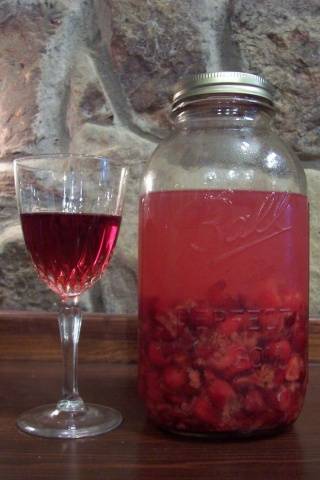 Es mejor hacer este vino con cerezas, dejando un puñado de semillas para el olor. Las bayas sin semillas se dejan fermentar en un recipiente durante 24-36 horas.