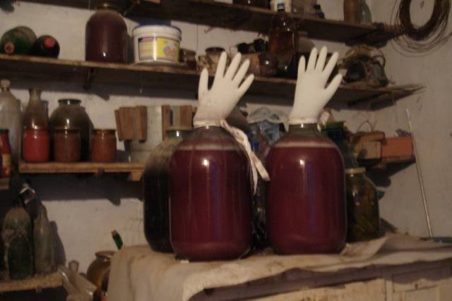 - La masa madre está hecha de frutas trituradas, azúcar y agua, levadura de vino, se coloca en un lugar oscuro durante 2-3 días para una fermentación vigorosa. Más a menudo toman todo el volumen de fruta de una vez.