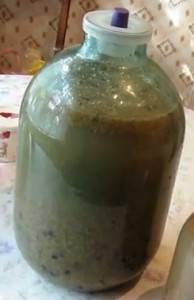 Ahora se agrega a la mezcla una masa madre de vino preparada con pasas (no es necesario filtrarla). Para que el proceso de fermentación se desarrolle correctamente, se instala cualquier sello de agua en el recipiente. No permite que el oxígeno del aire penetre en el recipiente y al mismo tiempo permite que escape el exceso de dióxido de carbono generado durante la fermentación.