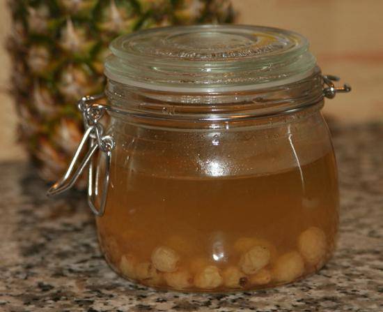 Si asumimos que ya ha hecho el cultivo iniciador, entonces necesita encontrar otro 1 kg de pasas, 2 kg de azúcar y 7 litros de agua purificada.