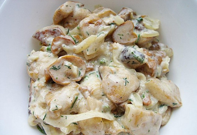 La salsa de hongos porcini con crema es un plato delicioso, delicado y satisfactorio con un gran aroma que puede agregar variedad al menú habitual. Se puede preparar a base de caldos, crema agria, nata, mayonesa, leche o vino. A menudo se sirve como salsa para pastas, cereales o puré de verduras, pero no se excluye el uso de salsa de champiñones con crema como plato principal.