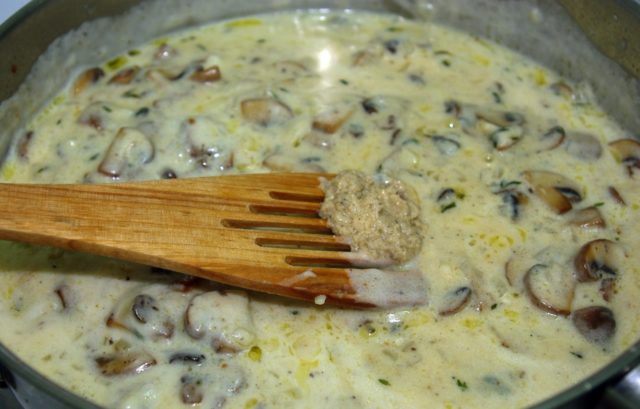 La salsa cremosa de champiñones, preparada según la receta clásica, se destaca con un aroma inolvidable y un sabor increíble.