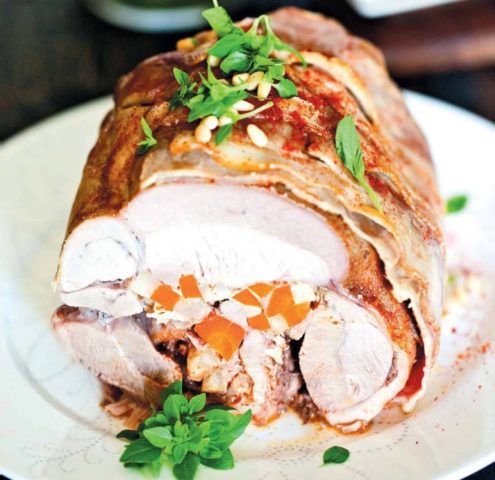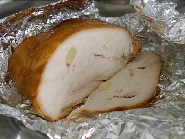 El cerdo hervido con pavo es un plato versátil con muchas ventajas. Con ella se preparan sándwiches para los bocadillos cotidianos. Se puede poner en una mesa festiva como manjar de carne. Es sabroso y saludable, ideal para alimentos dietéticos. 100 g de carne de cerdo al horno, cocida en el horno, contienen solo unas 100 kcal.