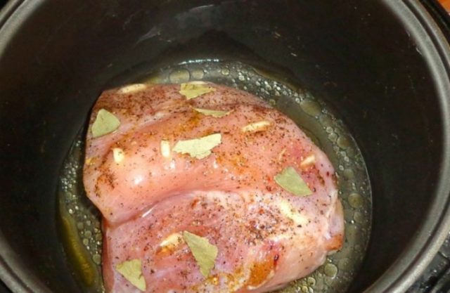 La receta de una multicocina es extremadamente simple. Necesitará 800 g de filete de ave, 5 dientes de ajo, 2 hojas de laurel, 1 cucharada. l. aceite vegetal, 200 ml de agua, 1 cucharadita cada uno. sal y una mezcla de pimienta molida con condimento para pollo.