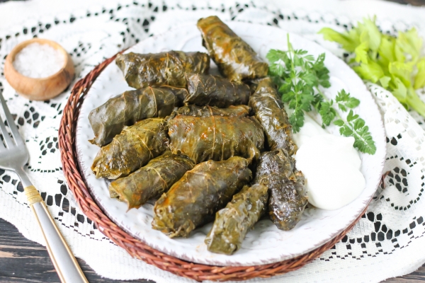 - Transfiera la dolma en porciones a los platos. Sirve con salsa.