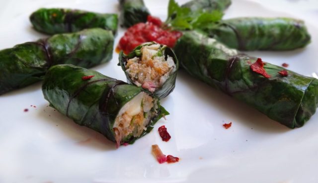 Las hojas deben retorcerse lo más fuerte posible para que el plato no se deshaga.