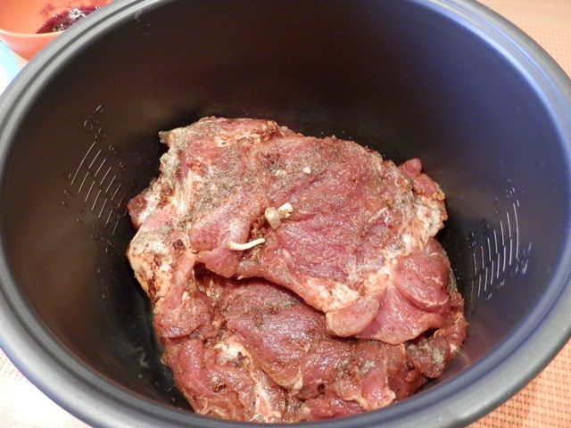 La carne se coloca en un bol, se fríe por cada lado durante 10 minutos. Luego, el fabricante recomienda cerrar la multicocina y encender el modo "Sopa / estofado" durante 2 horas. El plato se sirve mejor caliente con una guarnición de verduras.