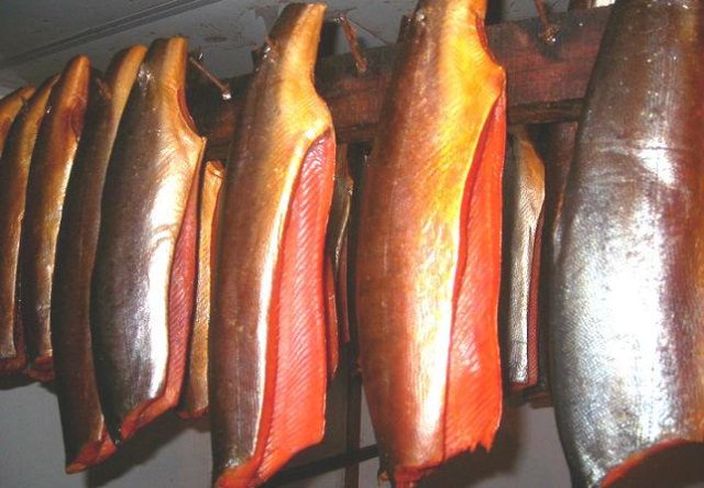Durante este tiempo, todas las capas de pescado estarán uniformemente saturadas con sustancias humeantes, que al principio prevalecerán en la capa exterior, se volverá más aromática y suave.