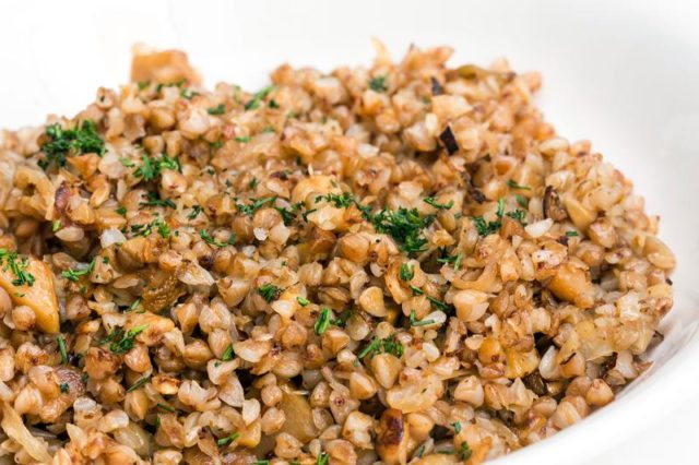 - El trigo sarraceno se clasifica, se lava y se sumerge en agua. La sartén se pone a fuego lento hasta que el plato esté completamente cocido.