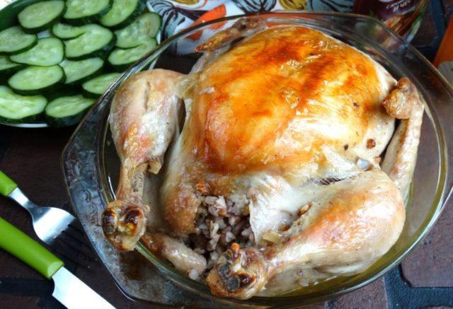 - El cereal enfriado se mezcla con la masa de queso. La mezcla resultante se rellena con pollo. Los agujeros están asegurados con palillos de dientes.
