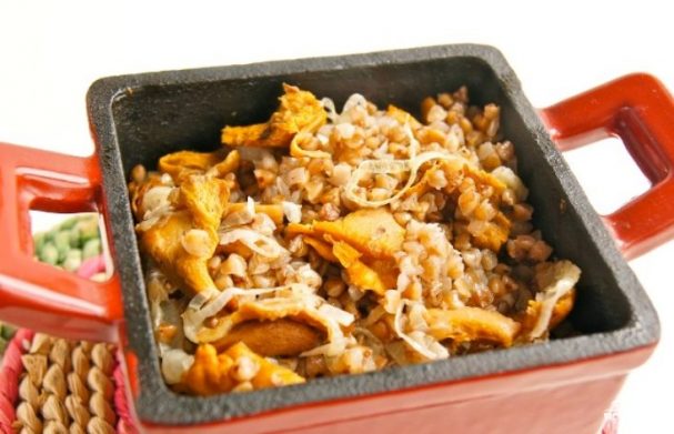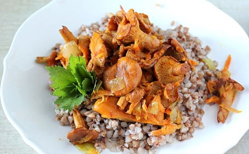 Cómo cocinar trigo sarraceno con rebozuelos.