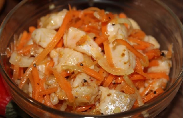 La lucioperca se corta en cubos grandes y luego se mezcla con vinagre. El pescado se deja un par de horas para encurtir, luego se le agregan zanahorias exprimidas y ralladas y cebollas picadas en trozos grandes. Sazone la mezcla con aceite vegetal caliente, salsa de soja, ajo picado y especias al gusto. La pieza de trabajo se retira durante varias horas en el refrigerador hasta que esté completamente cocida.