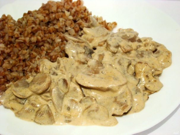 Los champiñones en salsa de crema agria combinan bien con las gachas