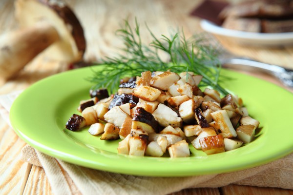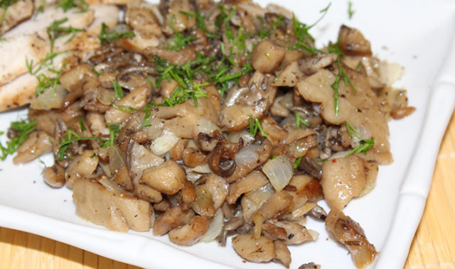 Es costumbre freír las frutas con cebolla en aceite vegetal o de oliva justo antes de servir. Por lo tanto, todas las guarniciones planificadas deben prepararse con anticipación. Acompañado de patatas hervidas y fritas, ensaladas y verduras guisadas. Muy a menudo, un plato de productos forestales es un alimento básico que reemplaza al pescado y la carne.