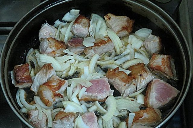 - Pica la cebolla. Enviar a la sartén. Cocine hasta que la verdura esté dorada.