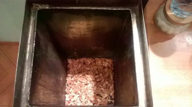 - Coloque virutas de aliso en el fondo del ahumadero.