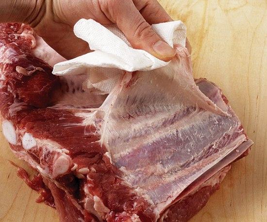 Retire la película correosa de las costillas.
