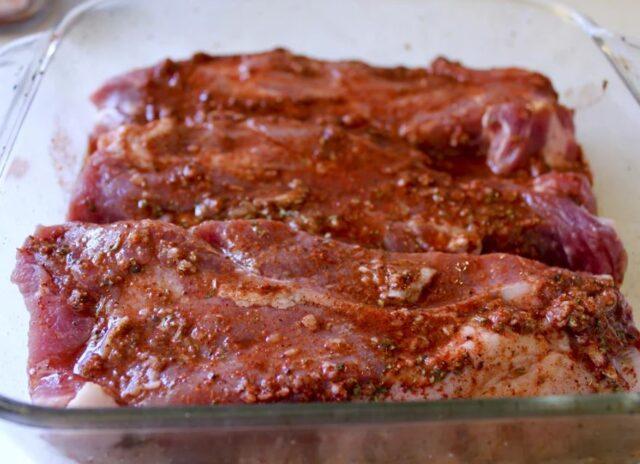 - Marine las costillas de cerdo.