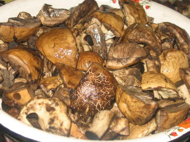 Antes de freír, los champiñones boletus deben cocinarse durante al menos cuarenta minutos. Este tiempo se considera óptimo para todo tipo de hongos. En ejemplares más viejos, es mejor quitar las patas, ya que son fibrosas y duras, y se recomienda utilizar setas jóvenes enteras.