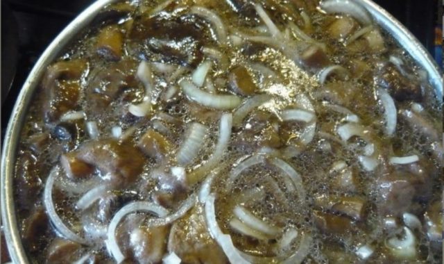 Después del procesamiento mecánico y térmico, los champiñones se colocan en una sartén y se fríen durante 15 minutos, llevando hasta que estén dorados. El fuego debe ser moderado, no debe cerrar la tapa, porque el exceso de líquido debe evaporarse. Sal al final.