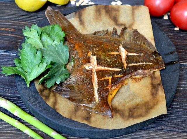 La celosía del dispositivo se lubrica con aceite vegetal y la platija salada se extiende sobre ella. La tapa del asador se cierra y la temperatura se ajusta a 120 grados. El ahumado del pescado en caliente dura de 35 a 40 minutos. El producto terminado se ventila ligeramente y se sirve.