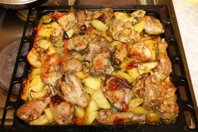Luego mete la sartén en el horno. Tiempo de cocción a 200 0C - 30-40 minutos Espolvorea con hierbas antes de usar.