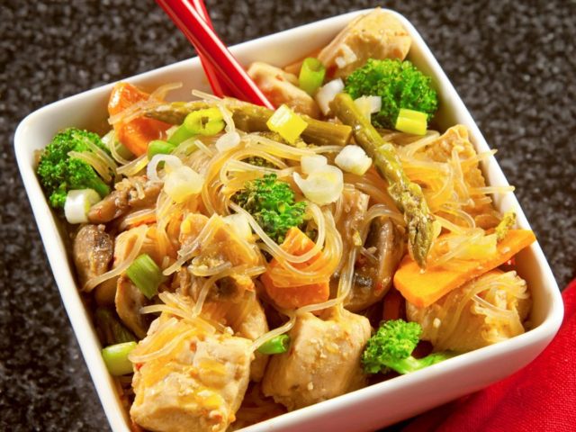 - Remoje el funchose de acuerdo con las recomendaciones del paquete. Freír con el resto de la comida.