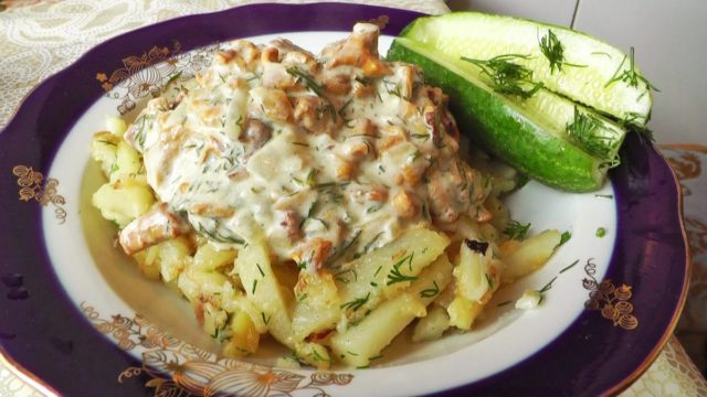 Si fríe rebozuelos con crema agria y patatas, obtiene un plato rico para toda la familia.