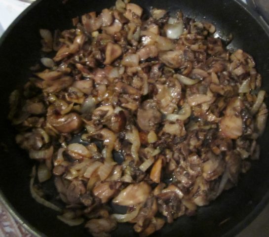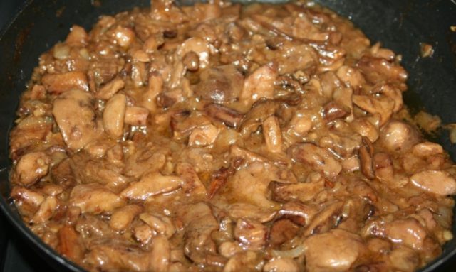 Un punto muy importante en la preparación de este plato es el tratamiento térmico primario del ingrediente principal.Si las muestras son demasiado viejas y han sido infestadas con parásitos en muchos lugares, es mejor hervirlas adicionalmente antes de freírlas durante 20-30 minutos. Los champiñones jóvenes y densos no necesitan tratamiento térmico forzado, por lo que basta con cortarlos en trozos y empezar a cocinar.
