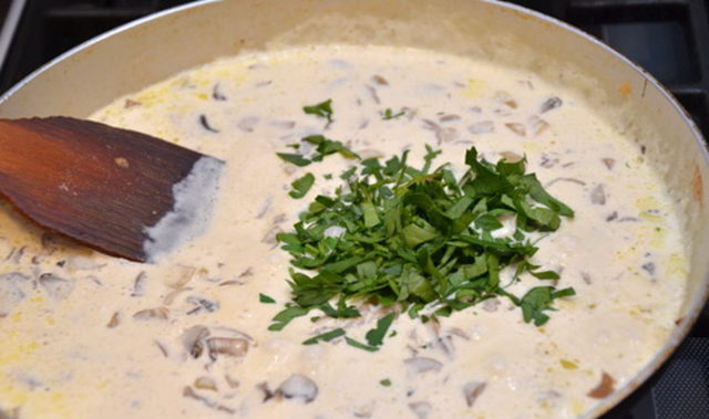 - Agregue la crema agria, mezcle todo bien, cocine a fuego lento hasta que la crema agria se vuelva cremosa.