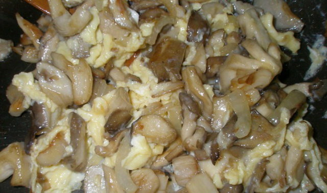 - Freír las setas y las cebollas en aceite vegetal.