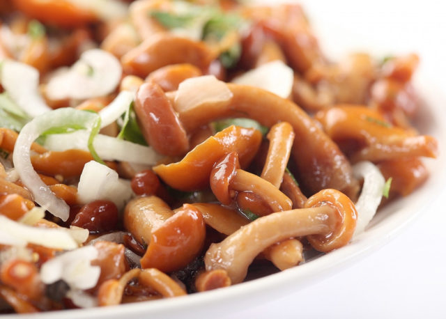 Receta para hacer hongos de miel en escabeche con crema agria y cebolla: