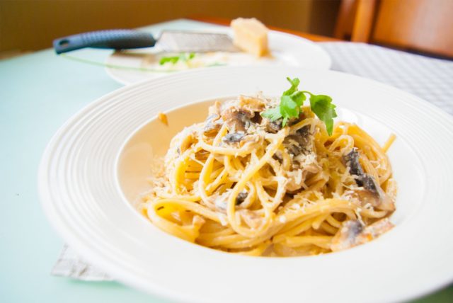 La pasta era un plato popular entre las familias italianas de bajos ingresos. Mezclaban pasta con cualquier producto que pudieran conseguir con un presupuesto ínfimo. Con el tiempo, el plato ganó gran popularidad y se extendió por todo el mundo. Es especialmente sabroso con la adición de rebozuelos.