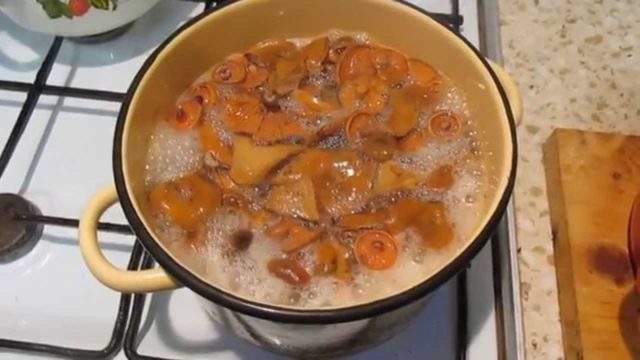 - Durante este tiempo, se prepara el relleno de champiñones. También puedes usar hongos congelados para ello. En un cazo se calienta 1 litro de agua, se le agrega un poco de sal y allí se echan setas frescas o congeladas. Cocine durante aproximadamente un cuarto de hora.