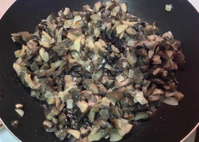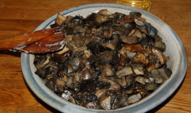 - Clasificar y hervir los champiñones. Cortar en trozos grandes. Enviar a una sartén seca precalentada. Freír hasta que el líquido se haya evaporado por completo.
