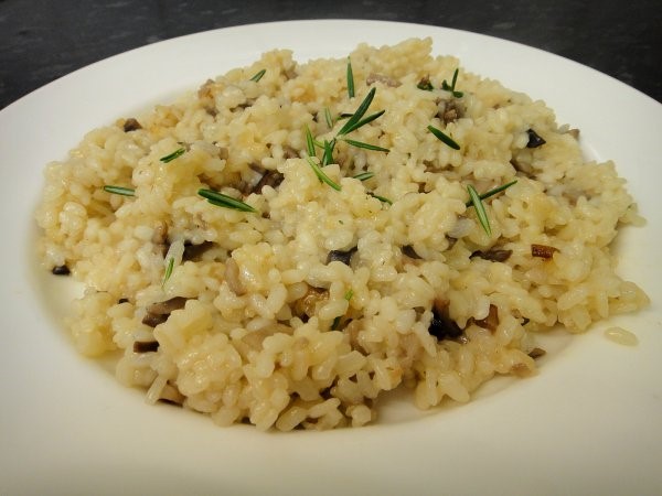 La ternura del arroz se combina idealmente con el aroma de las setas, y el queso picante le da un toque especial al plato.