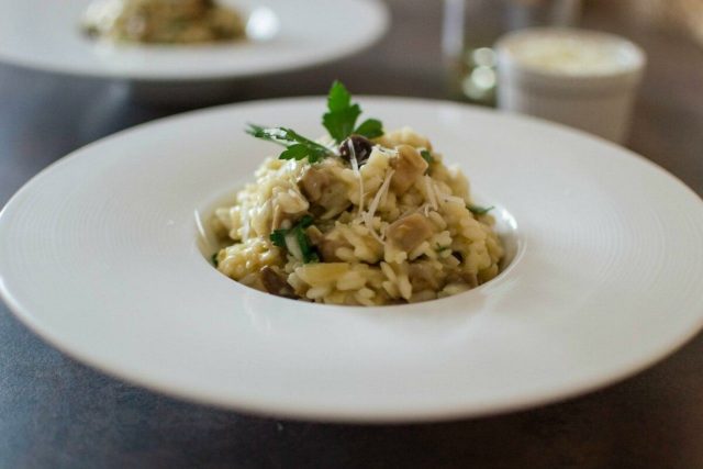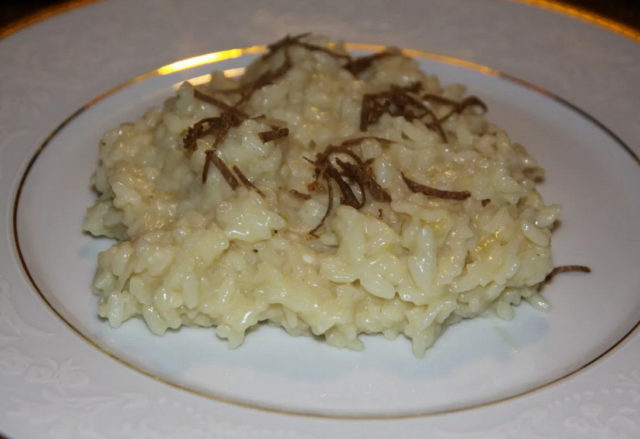 El risotto es un plato caliente y cremoso hecho con arroz, champiñones, verduras, mariscos y pollo. Si aparece una trufa en su composición, se convierte en una de las obras maestras culinarias más caras y aristocráticas.