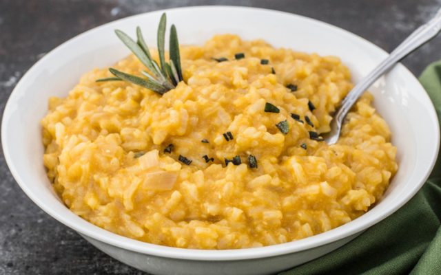 - Colocar el risotto en platos en porciones, espolvorear con parmesano encima y decorar con rodajas del ingrediente principal.