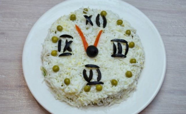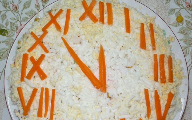 Receta de ensalada de Año Nuevo Reloj con palitos de cangrejo